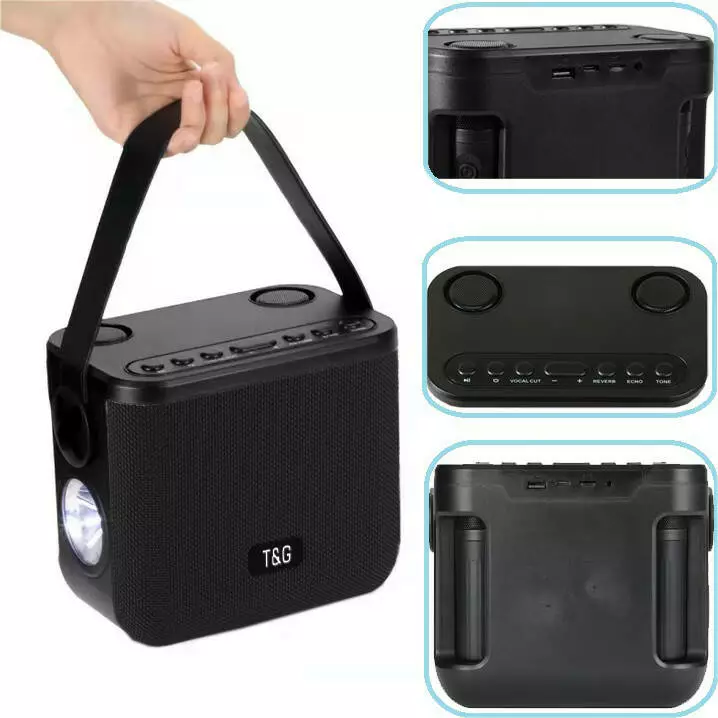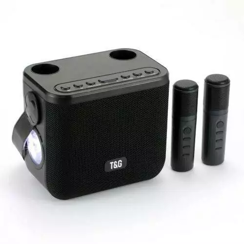 колонка, кабель для зарядки, аудио кабель, инструкция на английском языке, 2 беспроводных микрофона