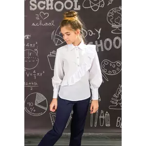 Симпатична біла блуза для дівчинки від ТМ "Трикотажний Край" стане прекрасним варіантом як для повсякденного носіння, так і для більш урочистих ситуацій. Вона виготовлена ​​з якісного матеріалу поплін на основі бавовни, приємна на дотик і проста в догляді. Довгі рукава роблять її придатною для всіх сезонів, а оригінальна рюша викликає непідкупний інтерес і зуміє підкреслити хороший смак вашої маленької красуні.