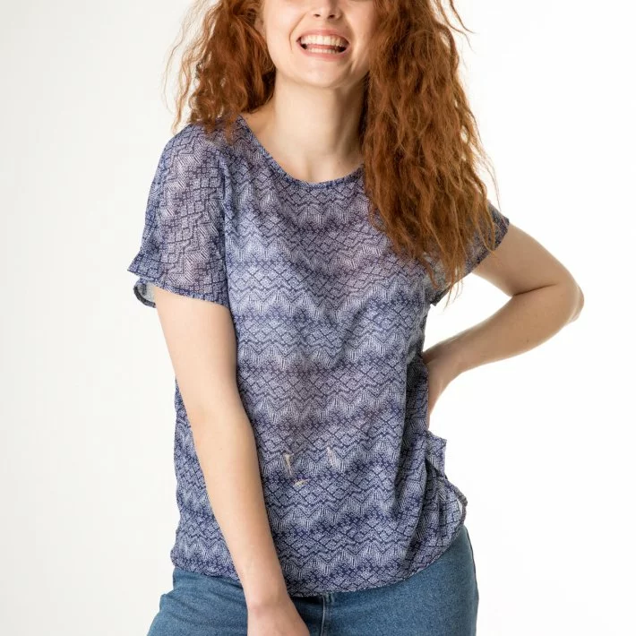 Легка блуза футболка з модного в цьому сезоні шифону - принт. Без