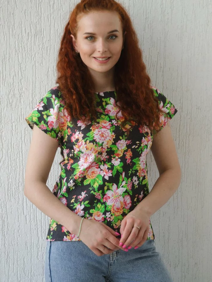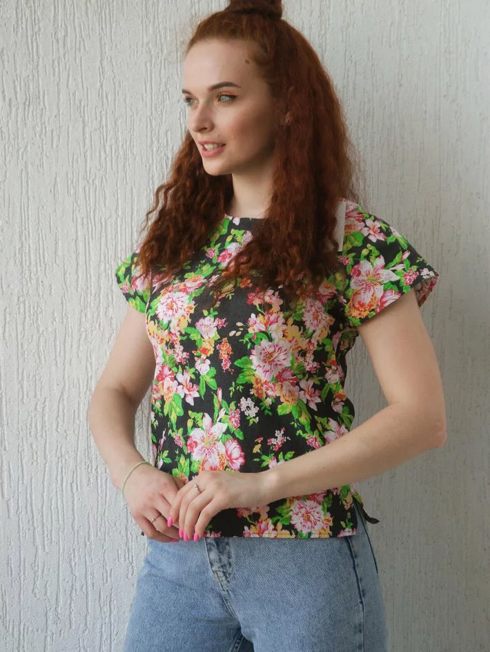 Блузка - футболка з тонкої джинси, застібка ззаду на