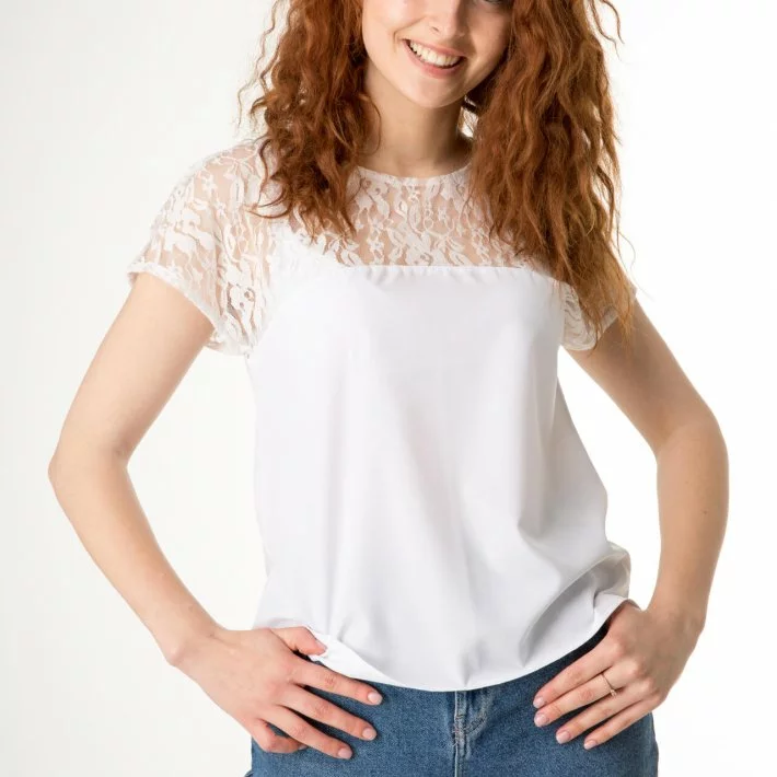 Блузка з легкого, але непрозрачнго супер-софта. Кокетка декорована