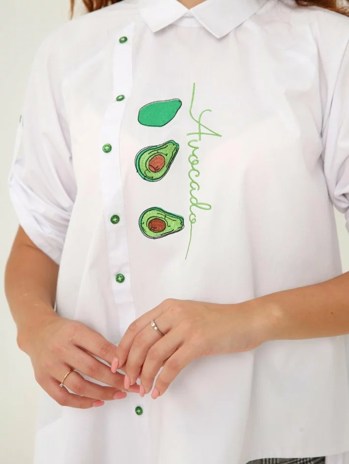 застібається ззаду на ґудзичок. Блуза має універсальну посадку за