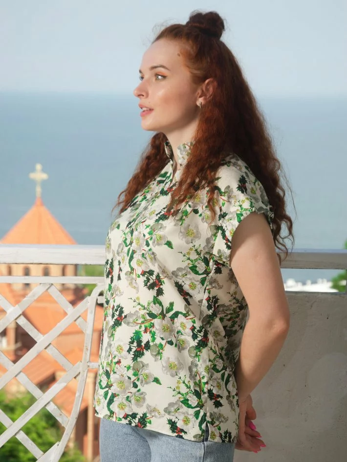 при цьому не мнеться і добре дихає. Горловина стійка, відкрита