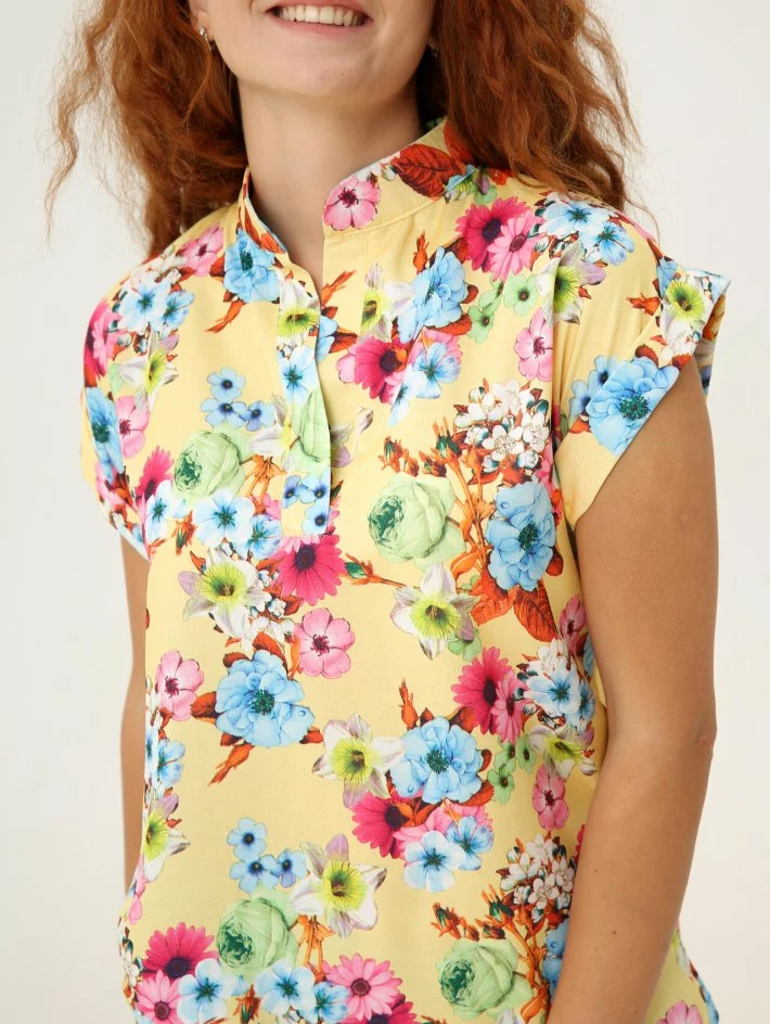 Блуза зі спущеною лінією плеча, відкритою горловиною, виконана з