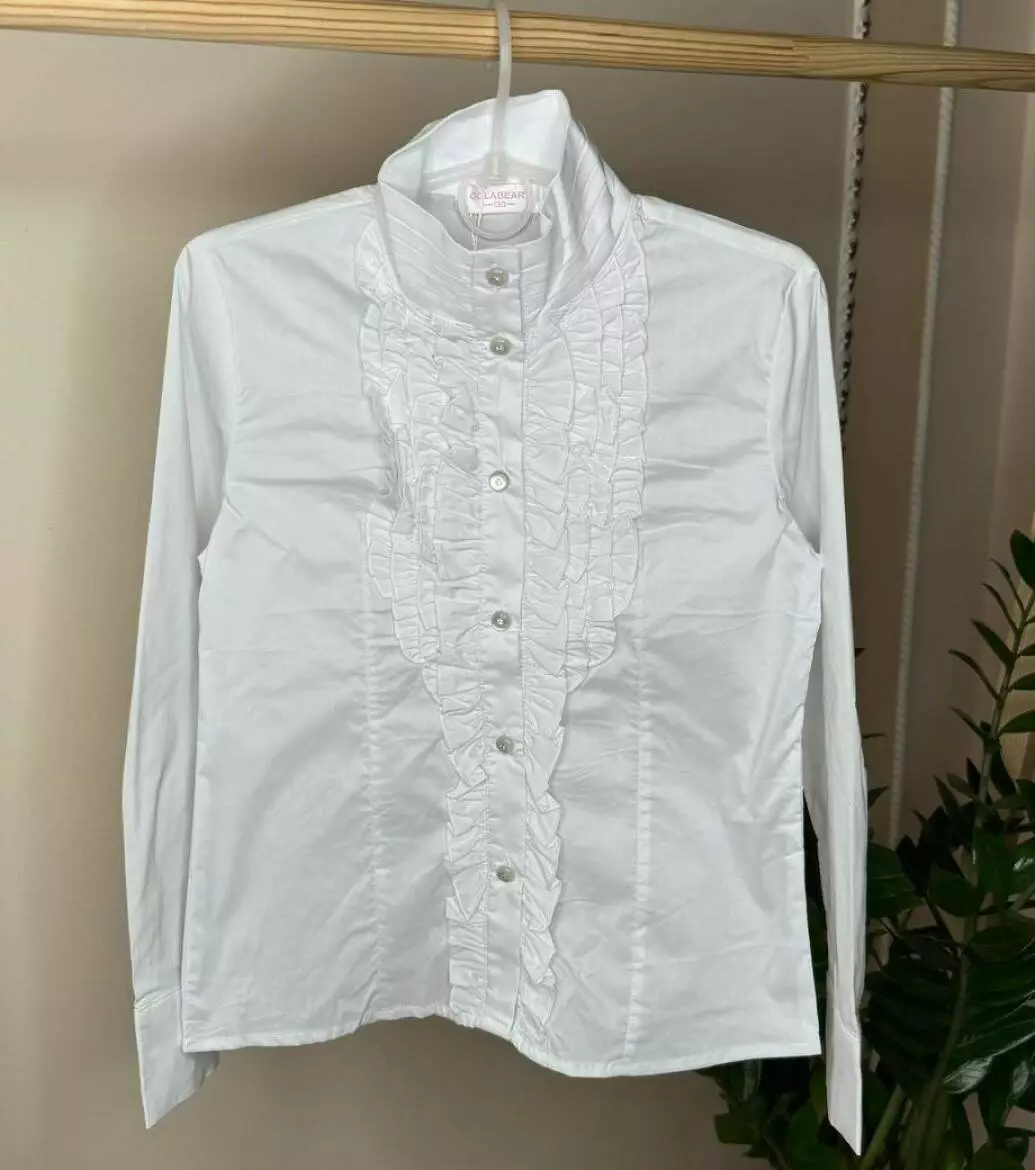 <p>Якісна блузочка для дівчаток.<br />Рукав - довгий.<br />Блуза декорована рюшами.<br />Склад тканини-68%котон/32%поліестер</p>