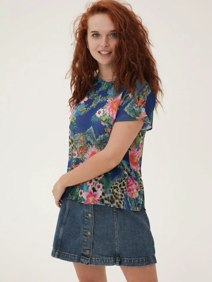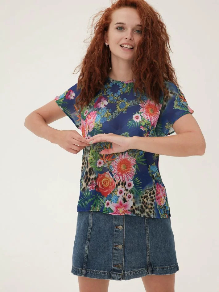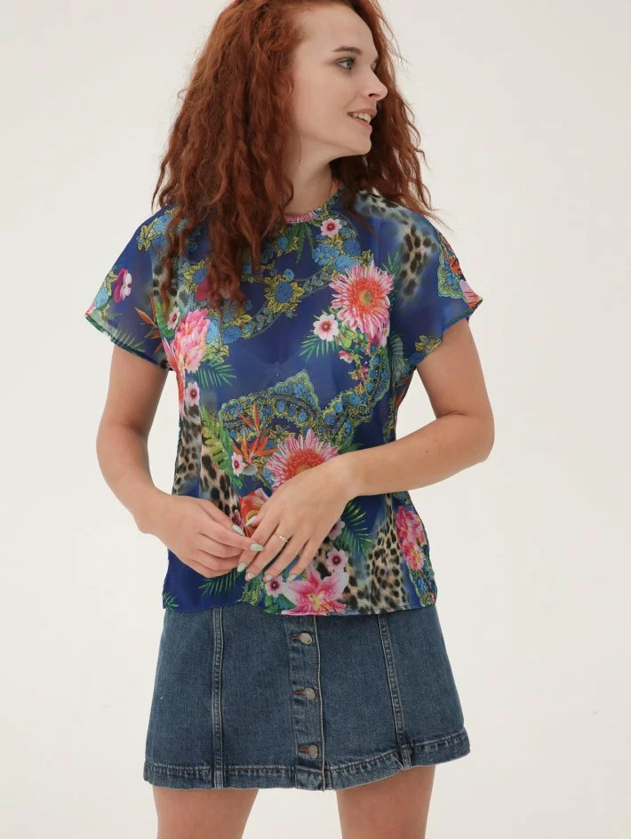 Блузка - футболка з шифону, застібка ззаду на ґудзичок. Вільне та