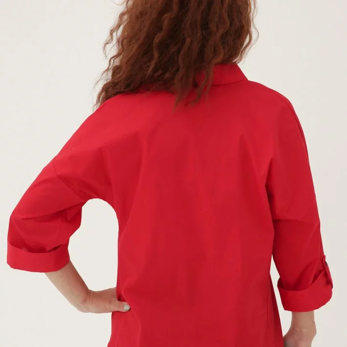Яскрава, оригінальна блуза з червоного бавовни, декорована