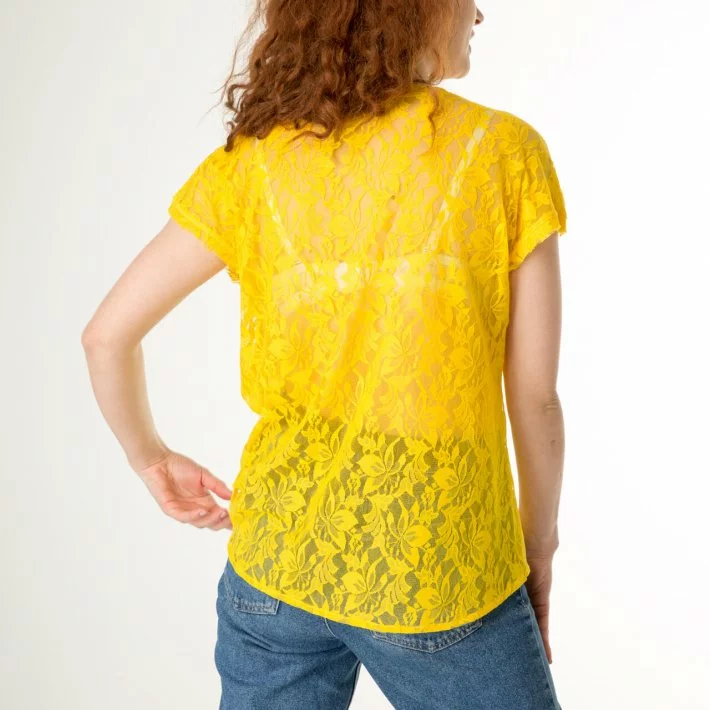 Блуза виконана з легкого мережива модних кольорів. Попереду, для