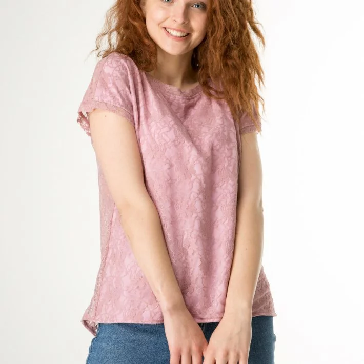 Блузка виконана з легкого мережива модних кольорів. Спереду, для