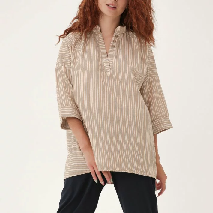 Легка і вільна блузка зі спущеною лінією рукава, по спинці кокетка.
