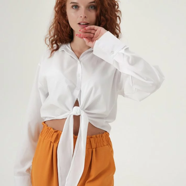 Цікава блуза-топ на зав'язках попереду. Ідеально підходить під низ