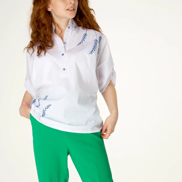 Дизайнерська блузка білого кольору декорована вишивкою і