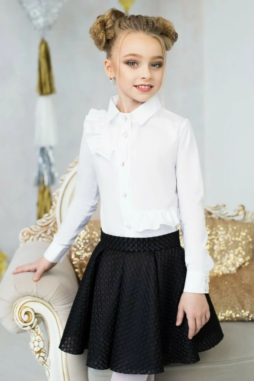 Такая экстравагантная школьная блузка KS-9 – настоящий хит нынешнего сезона. Она понравится смелым и уверенным в себе девочкам, поскольку объединила в себе наиболее актуальные модные тренды – асимметрию и рюши.