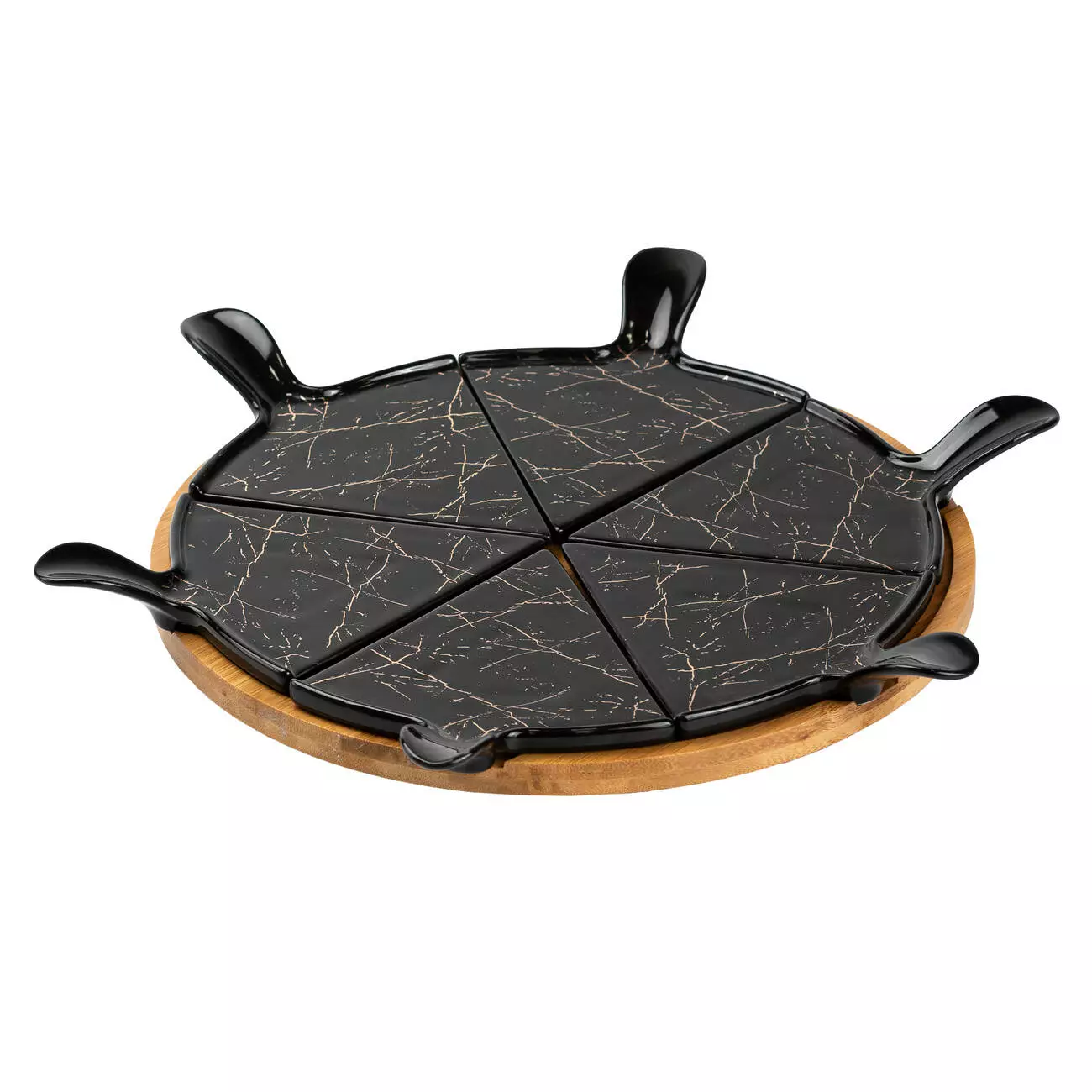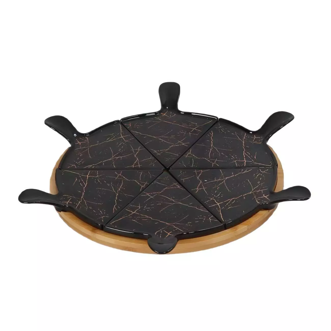 Блюдо для піци порцелянове на поворотній підставці, чорний мармур