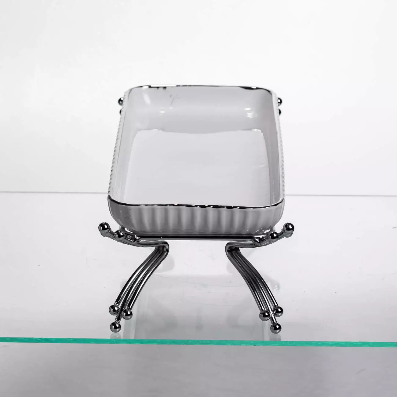 Металева підставка надає виробу надійності та візуальної легкості. Завдяки вазі 1 кг конструкція стійка й не ковзає на поверхні. Блюдо легко поєднується з іншими елементами сервірування та підходить для домашнього користування або ресторанного обслуговування.