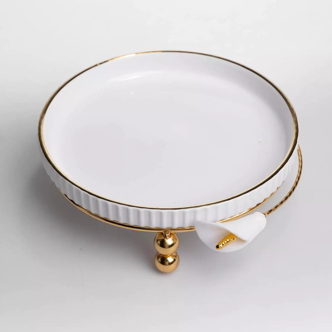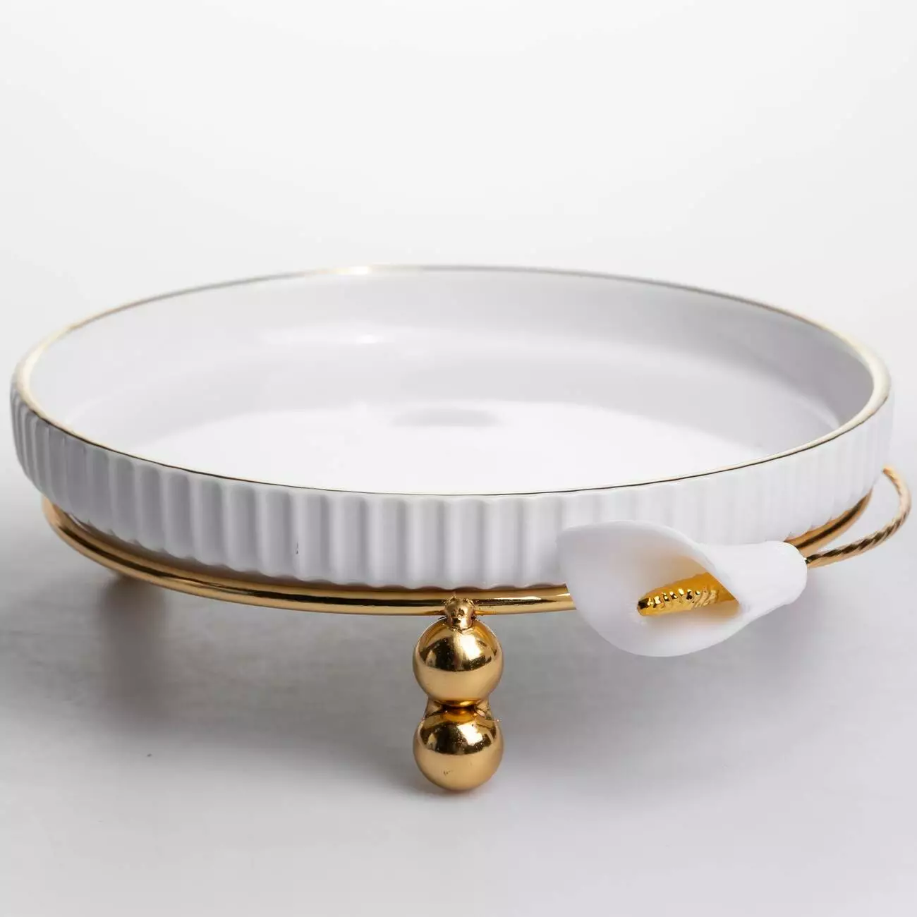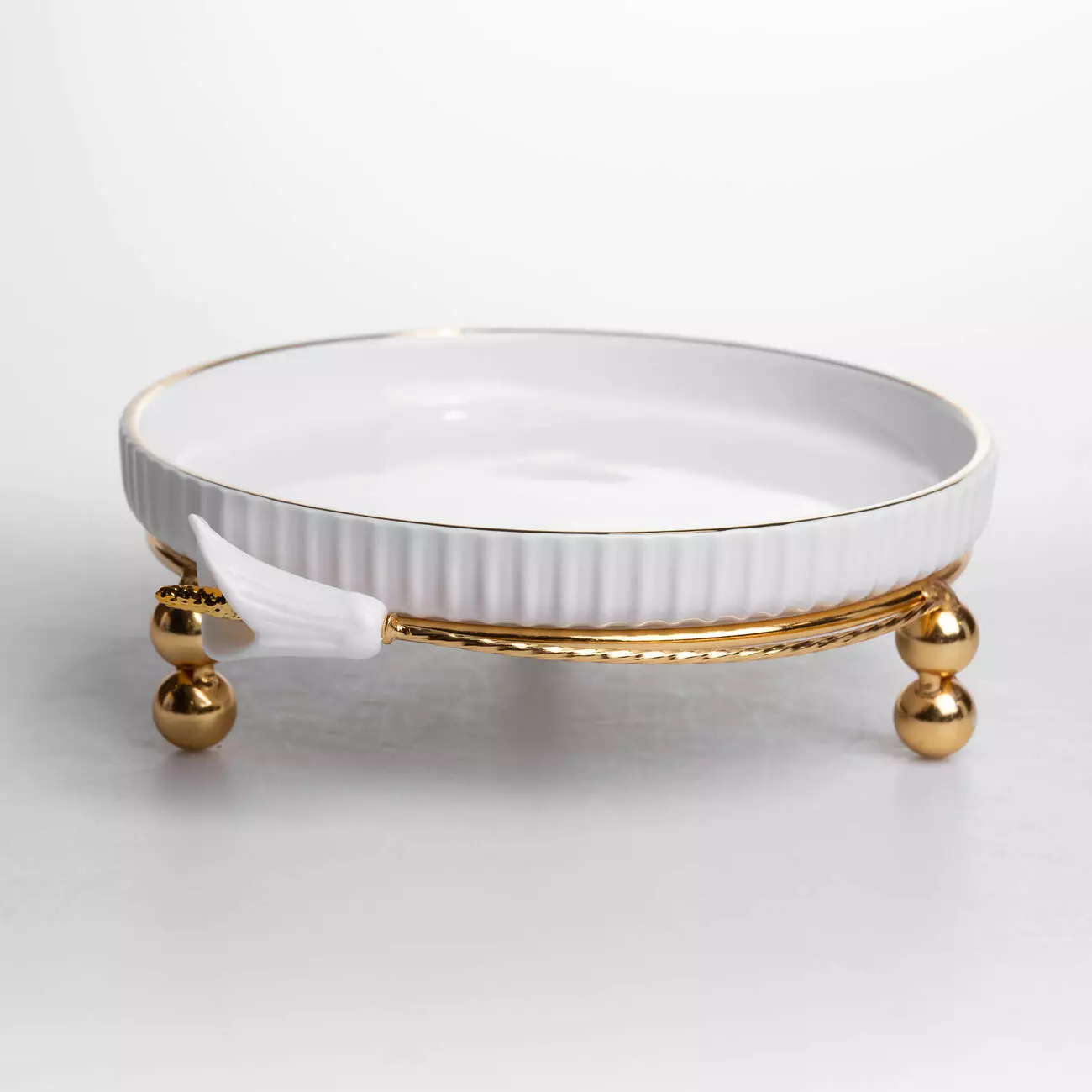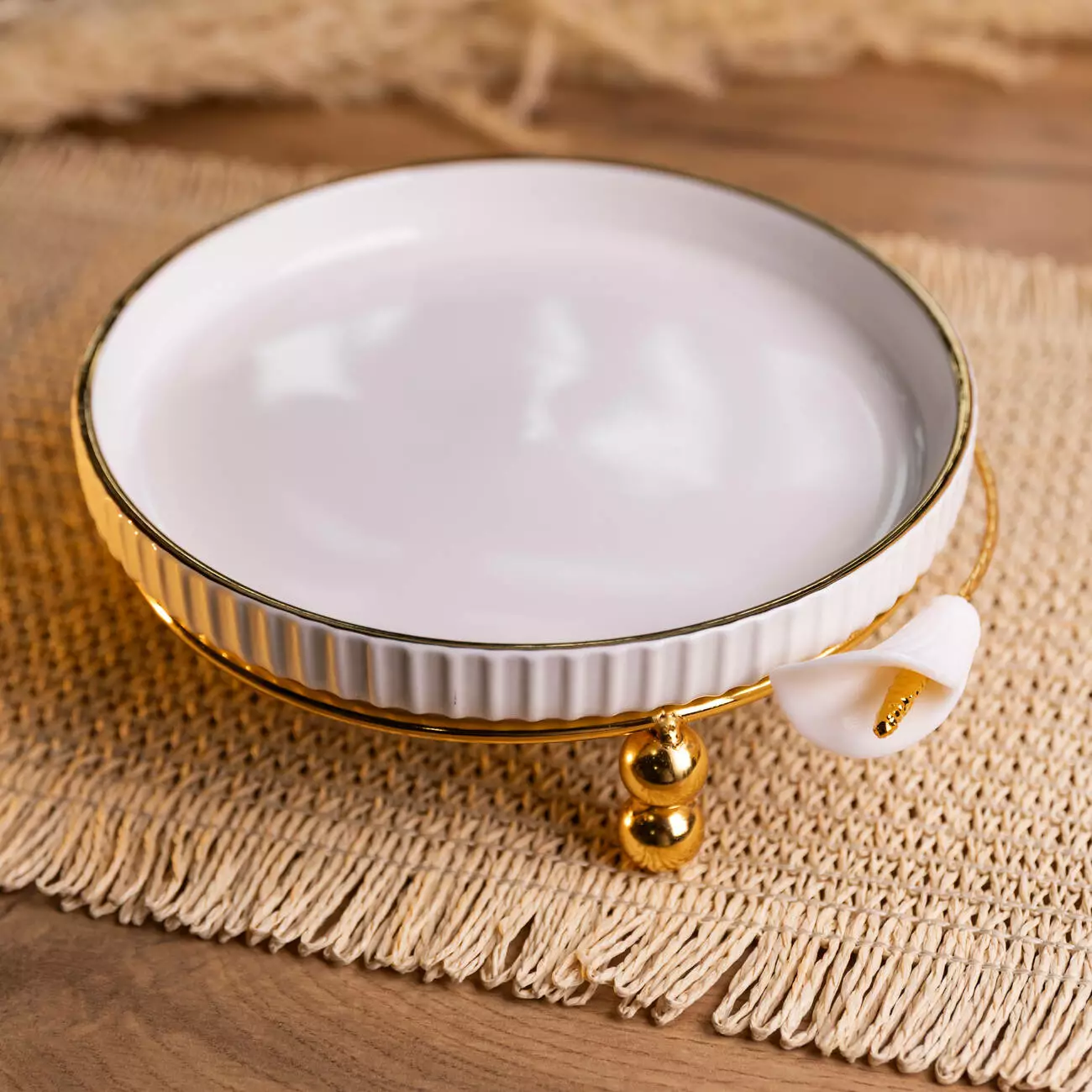 Глибоке порцелянове блюдо, доповнене витонченою підставкою.