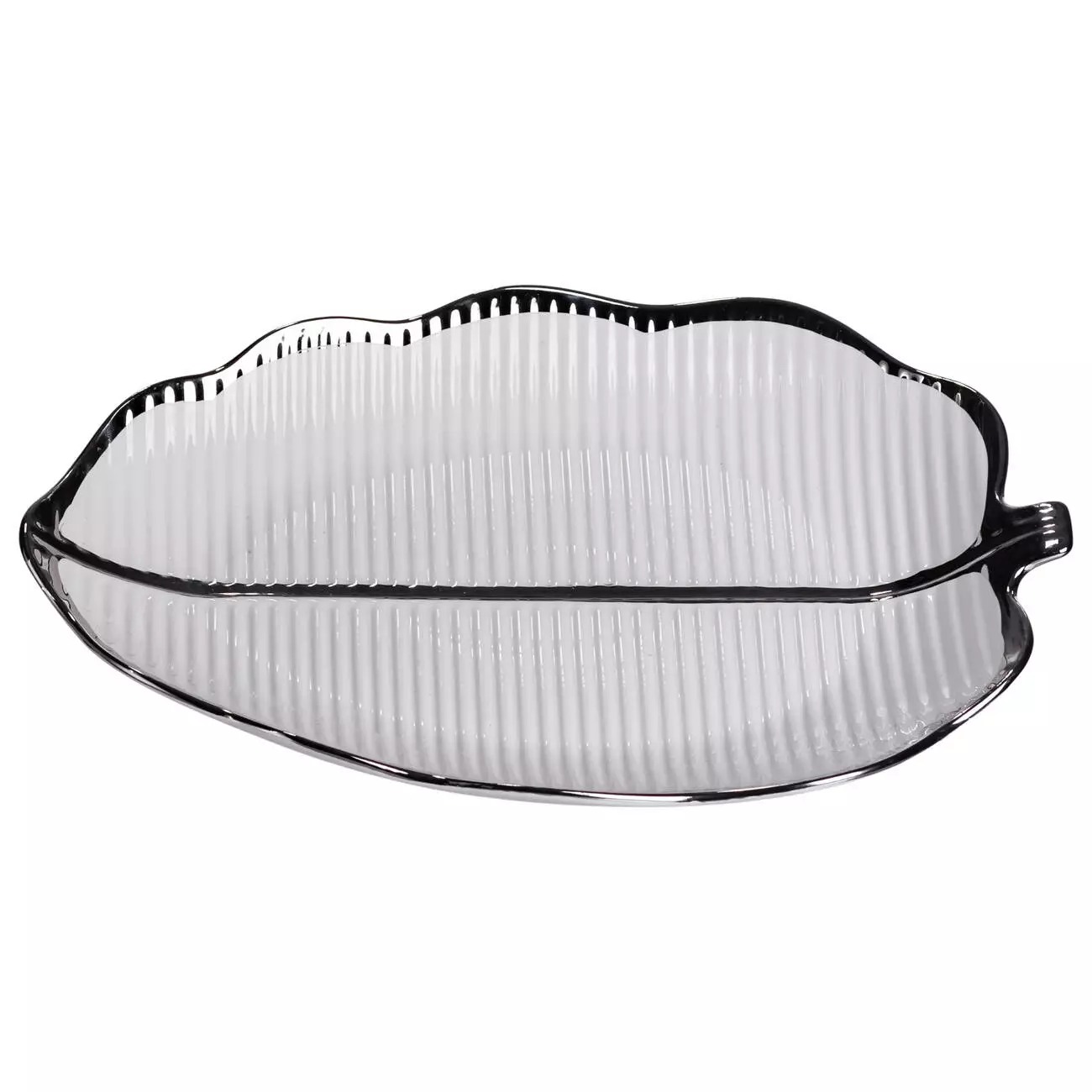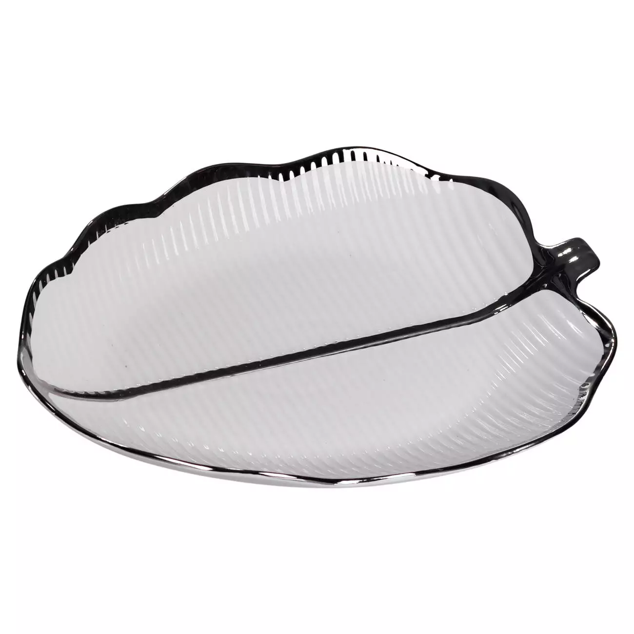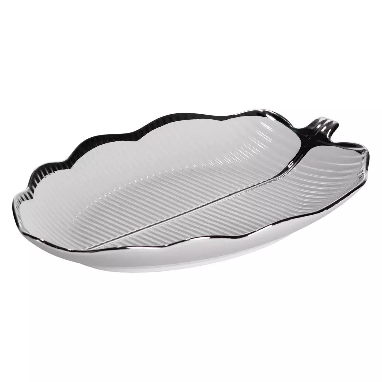 Елегантне порцелянове блюдо-«листок» 31×20×3 см з рельєфною