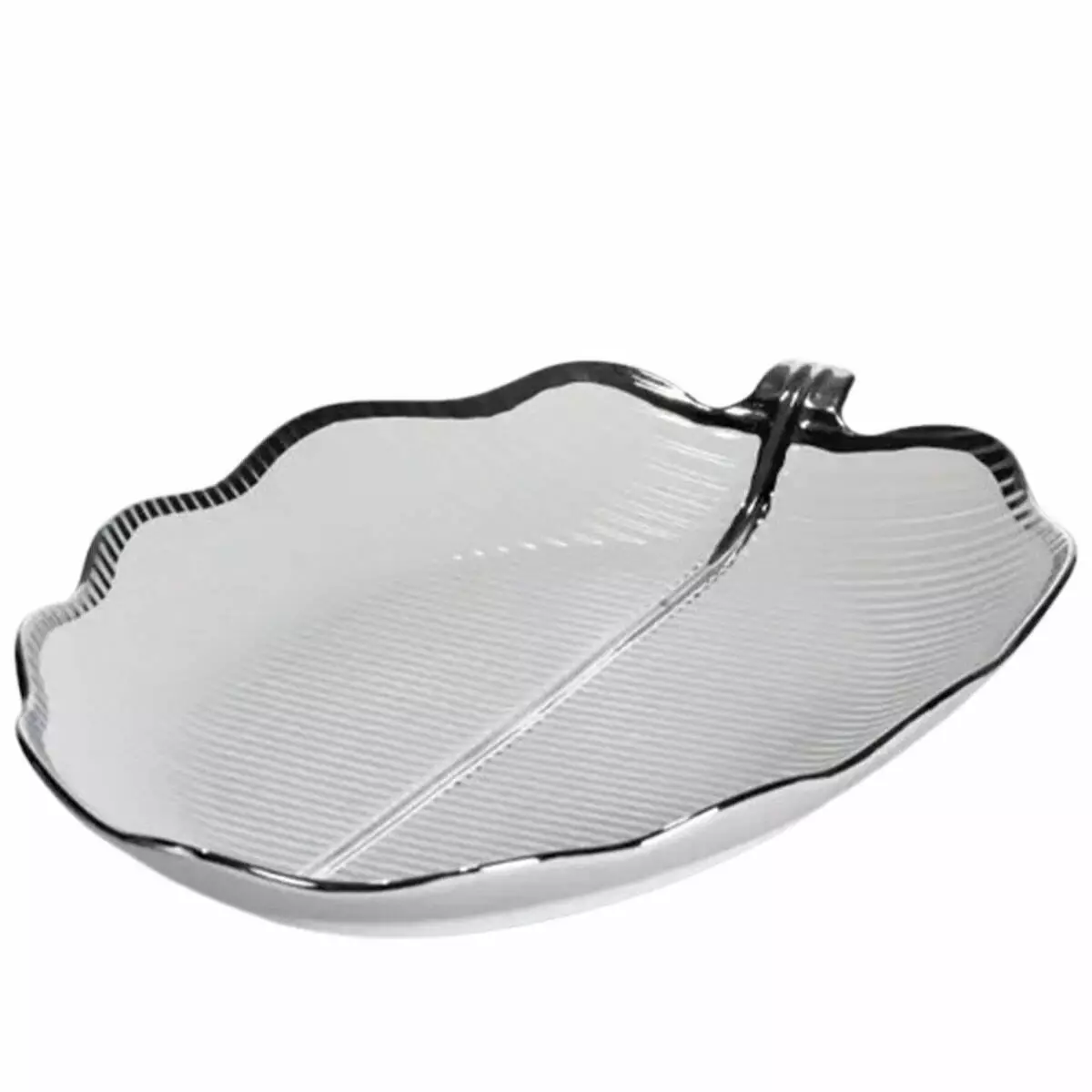Елегантне порцелянове блюдо-«листок» 35,5×24×4 см з рельєфною
