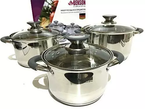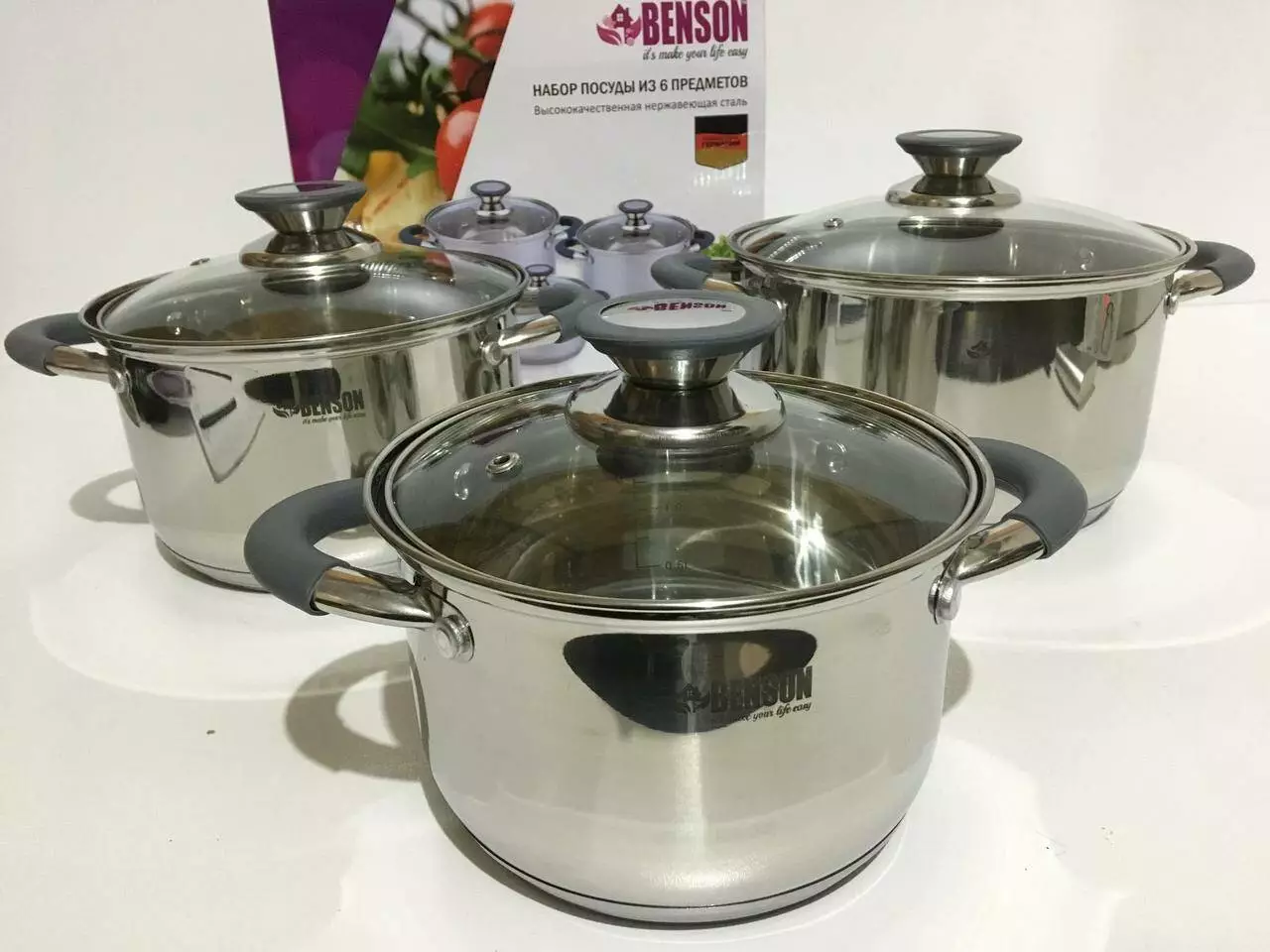 BN-190 (4) Набір кастр неірж 6 пр 2.1л2.9 л3.9 л силік.ручки (4 шт./ясть)
