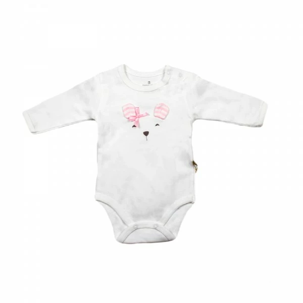 Мягкое и очень удобное детское боди для новорождённого. Замечательный вариант детской одежды на прохладную погоду, поскольку изделие выполнено из нежной хлопковой ткани с длинными рукавами. Боди универсального белого цвета, с изображением в виде зайчика. Практичные застежки-кнопки упрощают переодевание ребёнка и замену подгузника. Кнопки не содержат никель, чтобы не вызывать раздражение на детской коже.