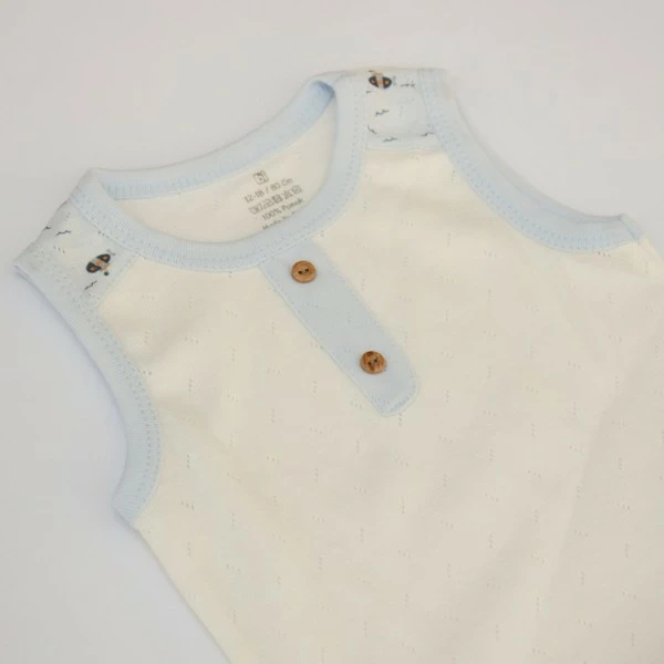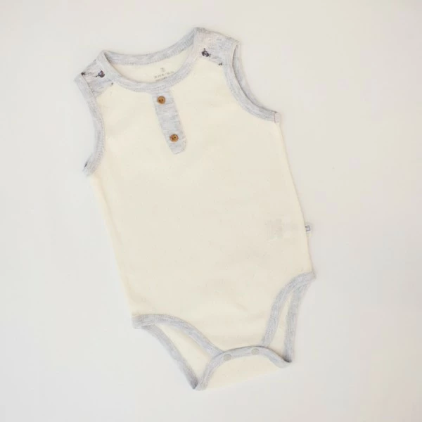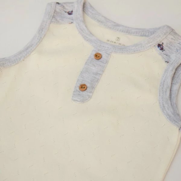 Боди выполнен в классическом бежевом цвете. Окантовка горловины
