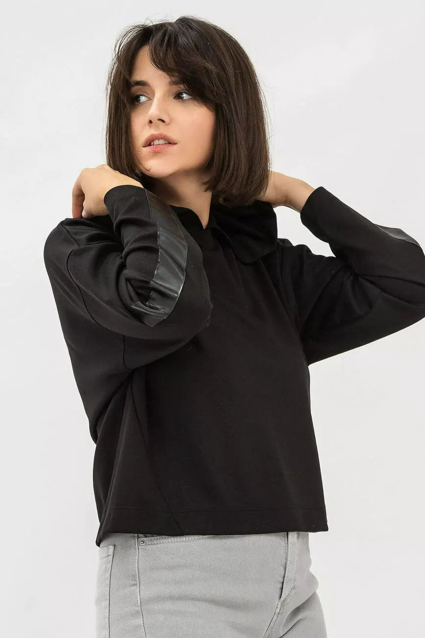 Рукави довгі, вшивні, декоровані манжетами з екошкіри. По низу