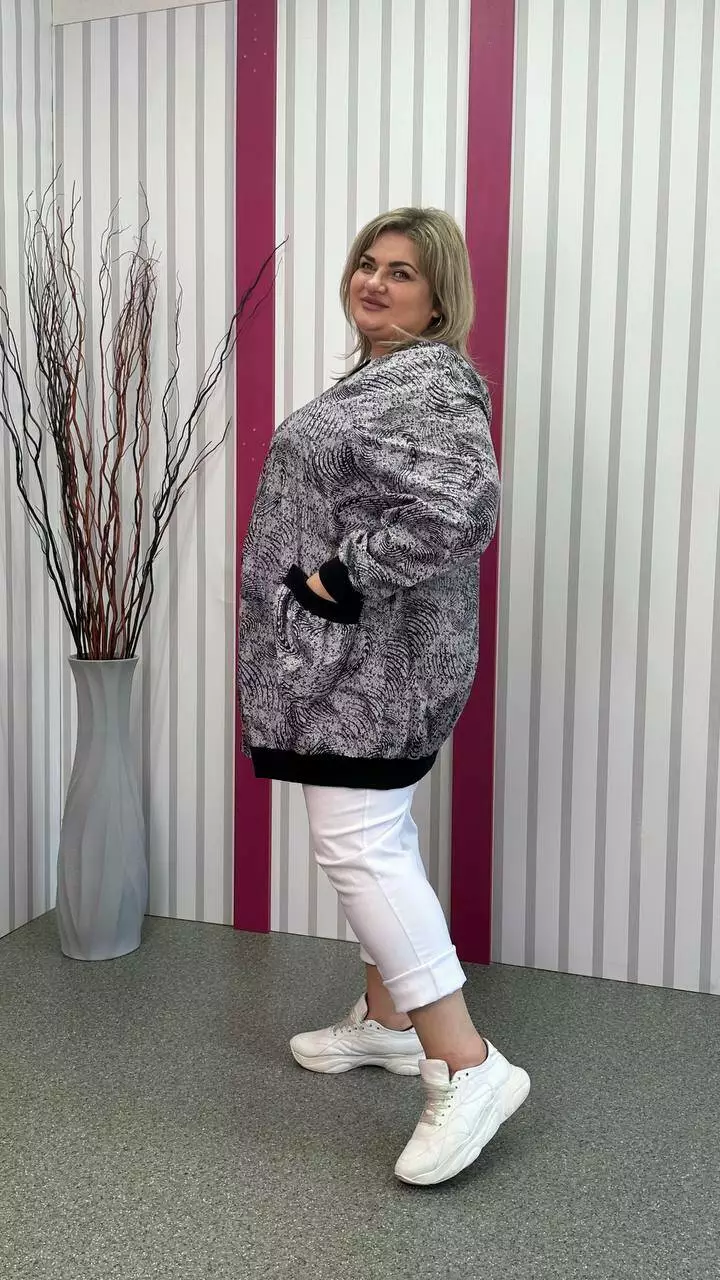 Бомбер із плащової тканини без підкладки, кишені накладні. Пояс. манжети та комір з трикотажної гумки. Силует вільний, рукав реглан. Дуже легкий. м'який, не пропускає воду та вітер. Застібка на змійці.