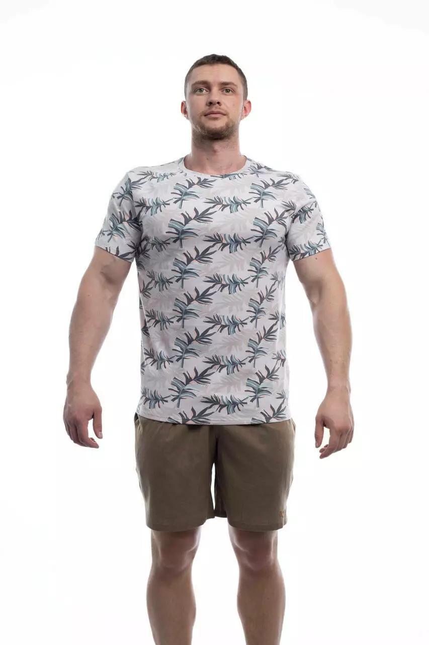Базова чоловіча футболка з рослинним візерунком додасть виразності та оригінальності повсякденному образу. У складі — бавовна високої якості з невеликим вмістом еластану. Тканина м’яка, дихаюча, добре зберігає форму та колір. Прямий крій із круглою горловиною пасуватиме будь-якому типу фігури. Легко комбінується з джинсами, шортами та речами спортивного стилю.