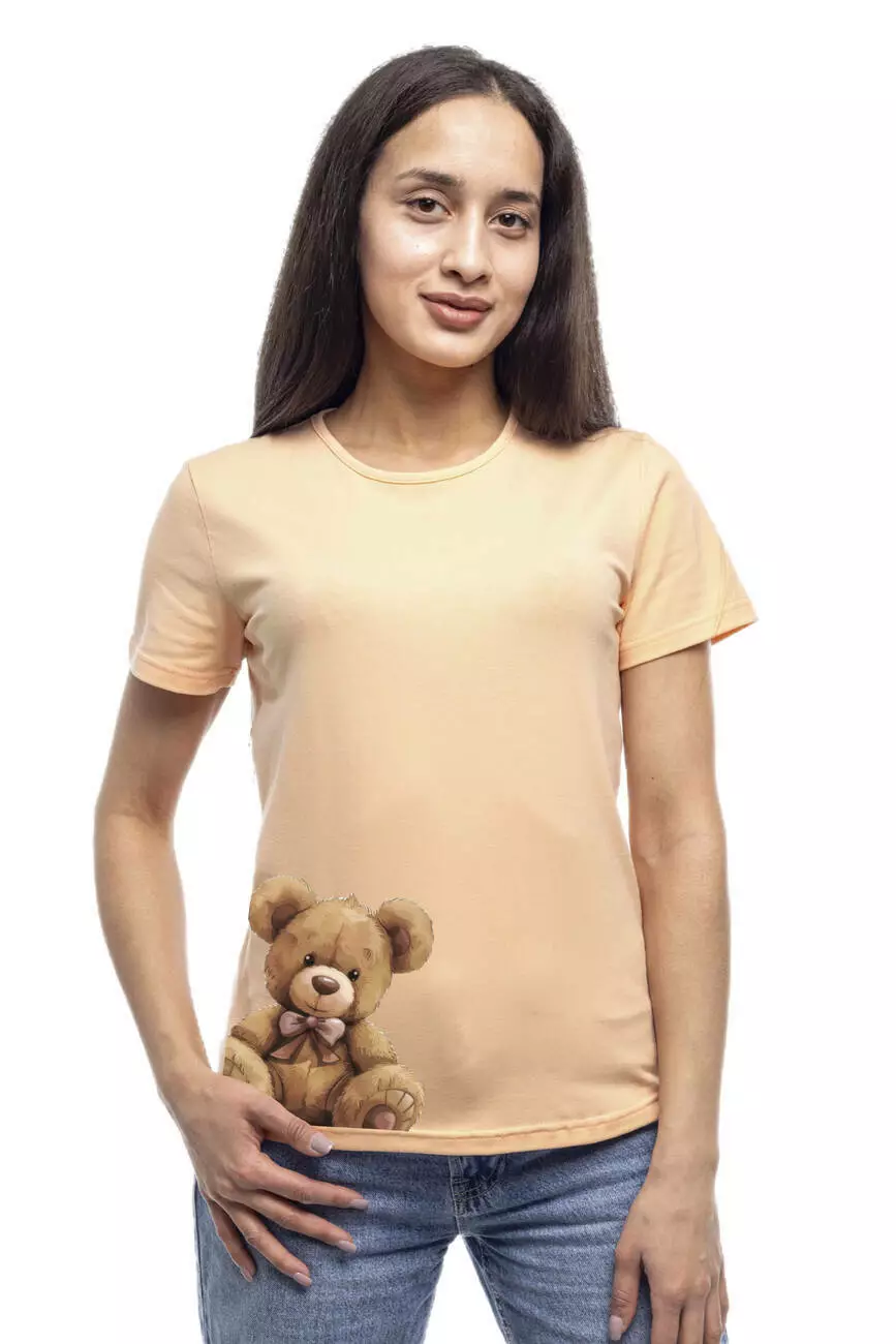 Bono Футболка жіноча прямого крою 950078 бежева принт плюшевий ведмедик
