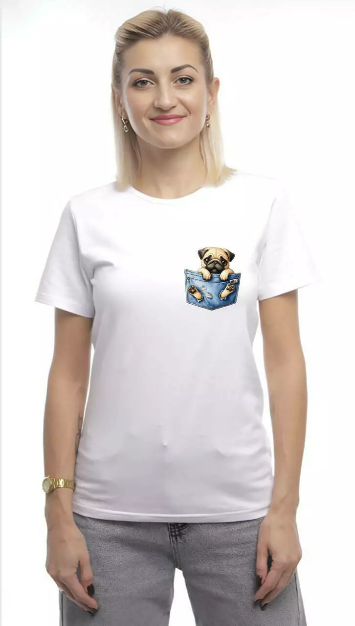 Bono Футболка жіноча прямого крою 950102 колір білий принт мопс