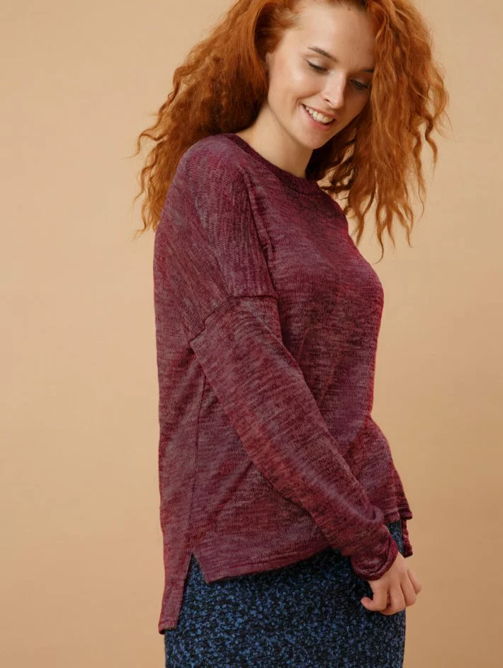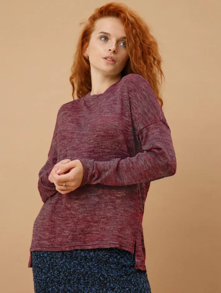 Кофта зі спущеною лінією плеча та оригінальним боковим швом з