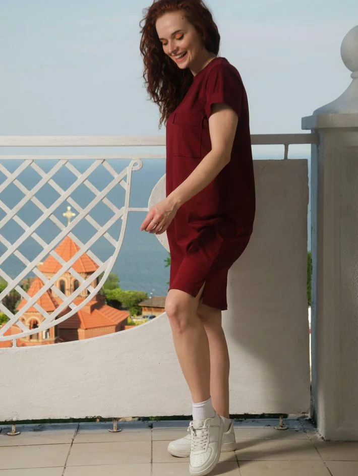кишенею. Короткі рукави на невеликому підгині. Сукня легка літня, в