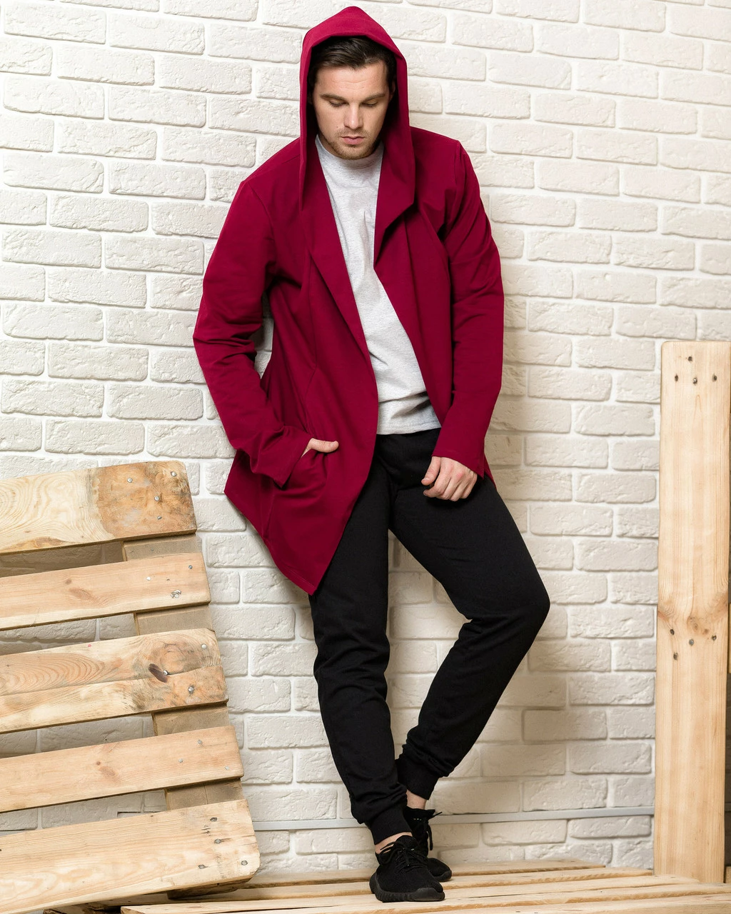 Бордовая мантия с капюшоном мужская и женская (кочевняя мантия унисекс, накидка, кардиган)