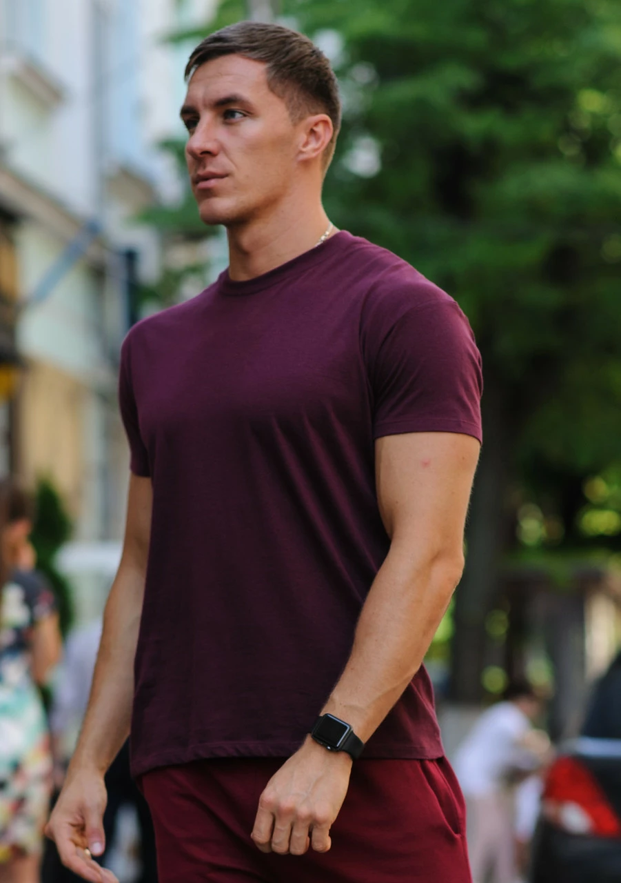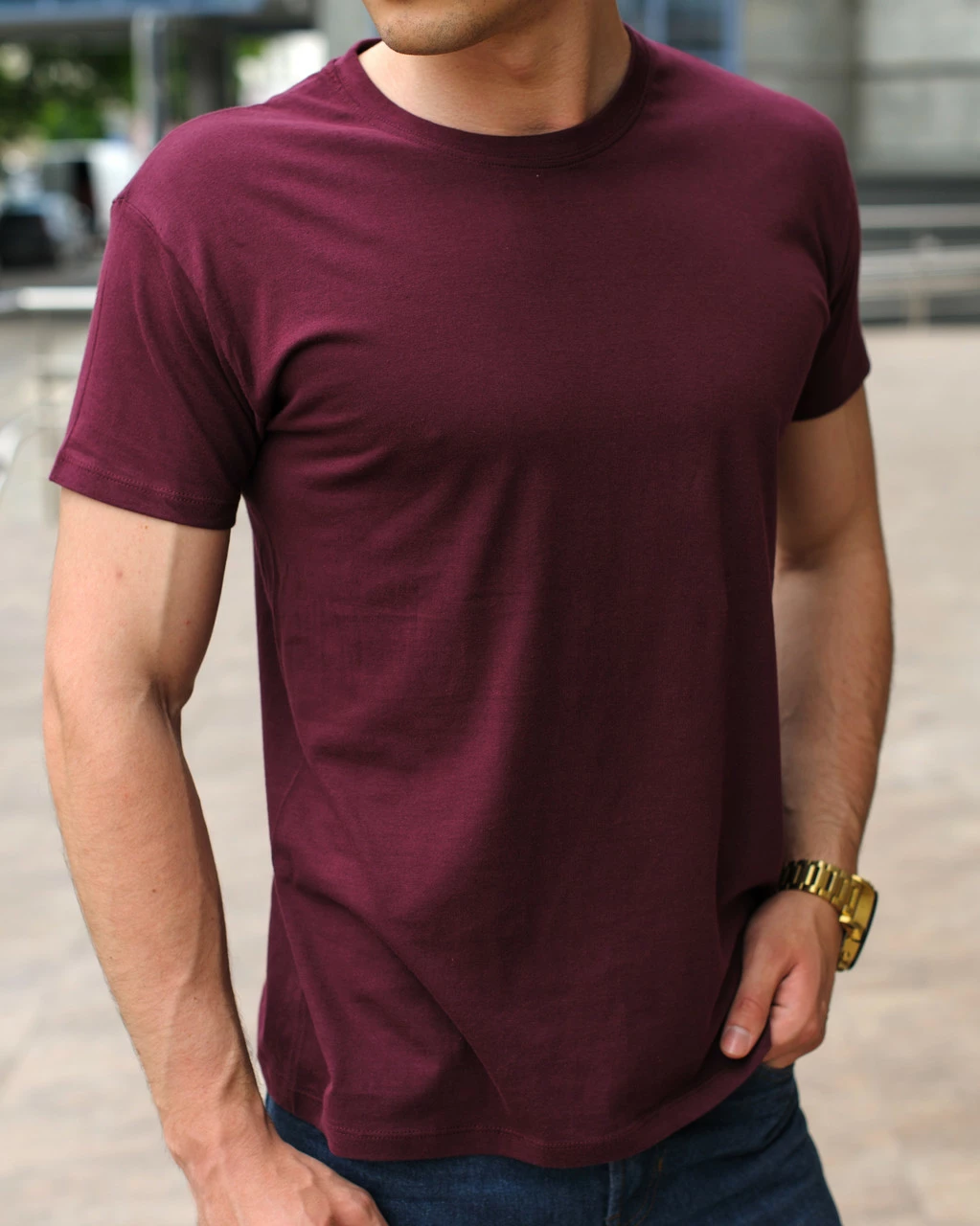 Бордовая мужская футболка / однотонные хлопковые футболки