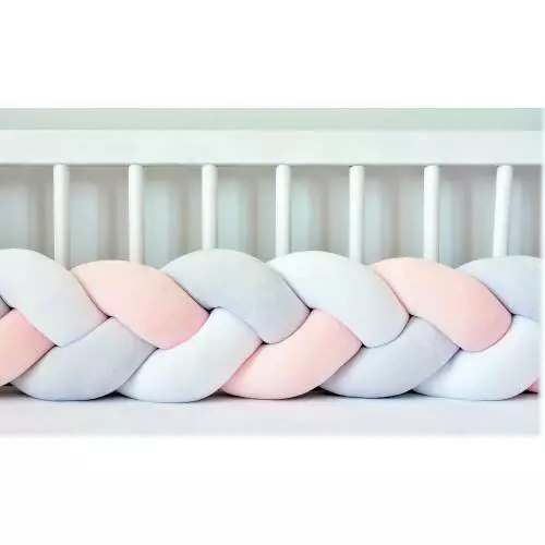 Фотография 1 товарной позиции интернет-магазина детских игрушек www.smarttoys.com.ua Бортик в кроватку Хатка Косичка Белый-Персиковый-Пепельный 360 см (по всему периметру кроватки)