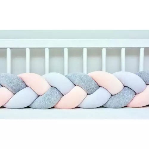 Фотография 1 товарной позиции интернет-магазина детских игрушек www.smarttoys.com.ua Бортик в кроватку Хатка Косичка Белый-Персиковый-Серый 240 см (на три стороны)