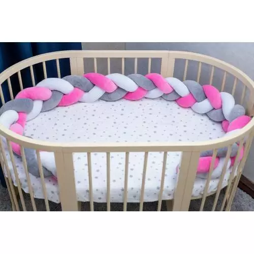 Бортик в кроватку Хатка Косичка Белый-Серый-Розовый 180 см (половина кроватки)