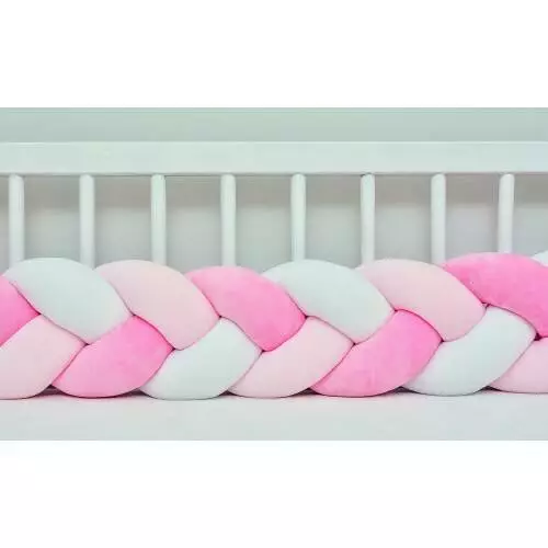 Фотография 1 товарной позиции интернет-магазина детских игрушек www.smarttoys.com.ua Бортик в кроватку Хатка Косичка Розовый-Персиковый-Белый 180 см (половина кроватки)