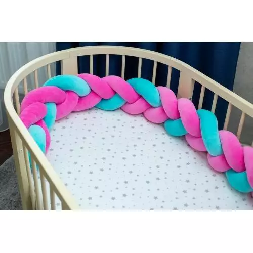 Фотография 1 товарной позиции интернет-магазина детских игрушек www.smarttoys.com.ua Бортик в кроватку Хатка Косичка Розово-мятный 180 см (половина кроватки)