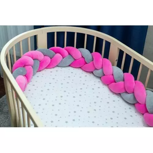 Фотография 1 товарной позиции интернет-магазина детских игрушек www.smarttoys.com.ua Бортик в кроватку Хатка Косичка Розово-серый 180 см (половина кроватки)
