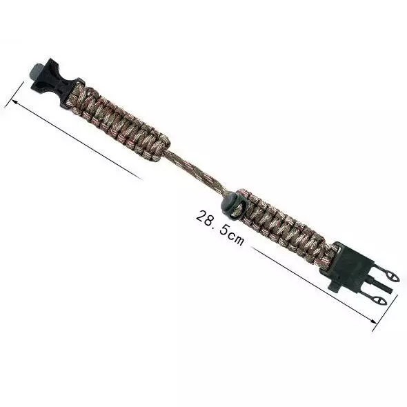 Универсальный туристический браслет, который станет незаменимым помощником в походе, на рыбалке или во время активного отдыха на природе. Прочное плетение из паракорда обеспечивает надежность, а встроенные инструменты добавляют функциональности: