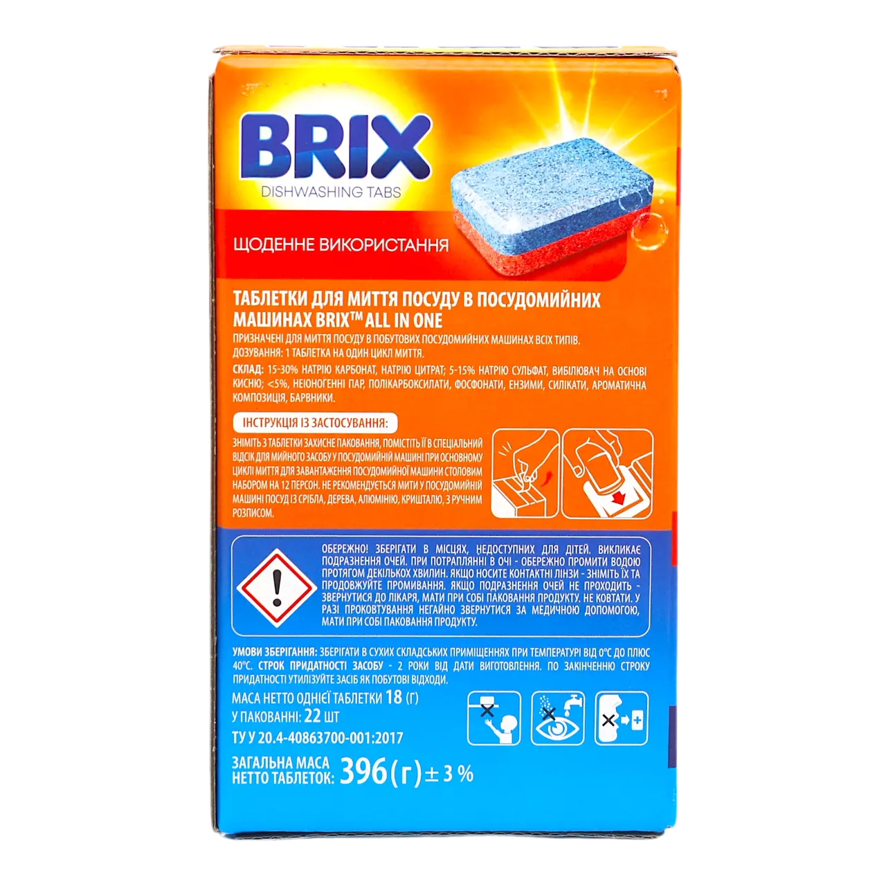 Таблетки для посудомийних машин Brix All in 1 у пакуванні по 22