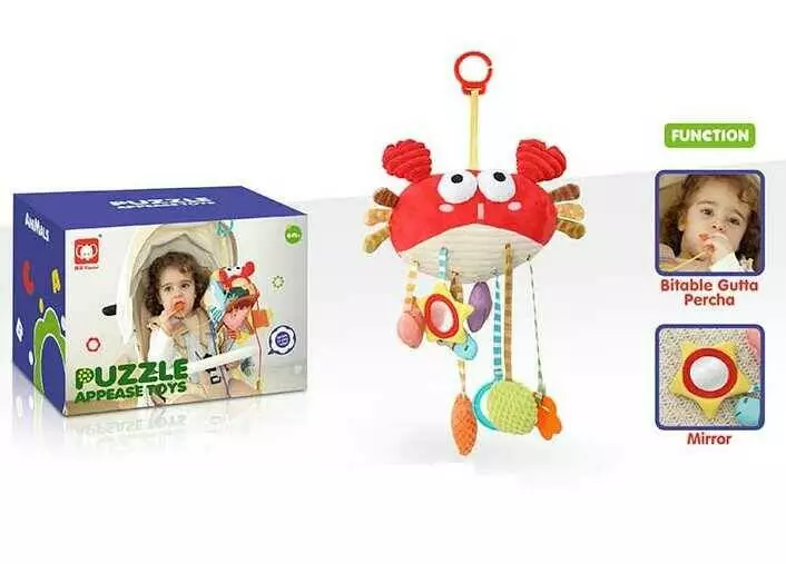 Брязкальце 20689 (36) “Краб”, мотузки для перетягування, прорізувач, шелесткі елементи, пискавка, кільце-тримач, в коробці