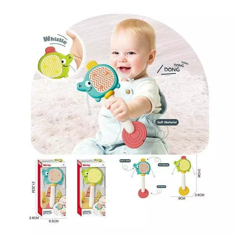Брязкальце 6228 (120) 2 види, "Слоник", колотушка, прорізувач, в коробці