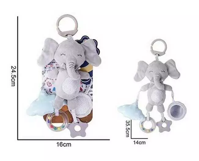 Брязкальце 688 M63 (120) "Слоненя", пискавка, гумовий прорізувач, підвіска з кульками, дзеркальце, на листі