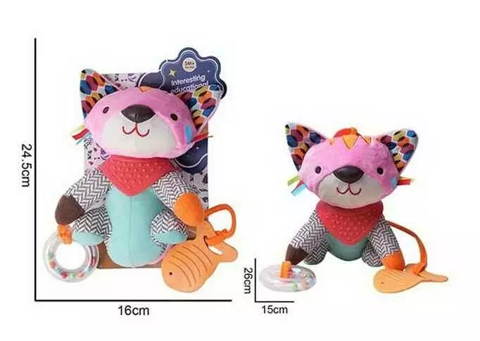 Брязкальце 688 M84 (96) "Котик", текстильне, кульки, 2 прорізувачі, шумливі вушка, кільце для підвішування, в пакеті