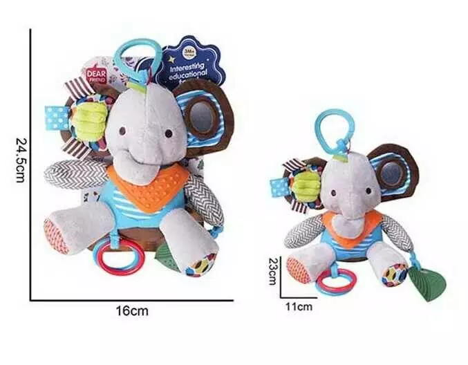 Брязкальце 688 M86 (96) "Слоник", текстильне, пискавка, 2 прорізувачі, підвіски, шумливі елементи, кільце для підвішування, в пакеті