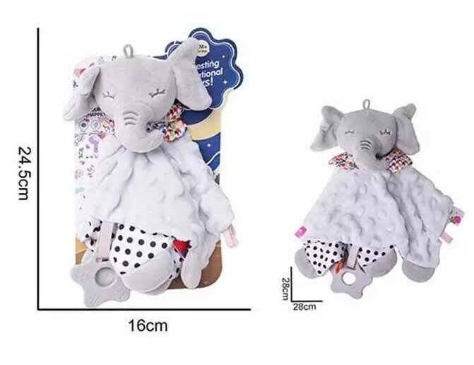 Брязкальце-комфортер 688 M69 (96) "Слоник", текстильне, гумовий прорізувач, шумливі вушка, петелька для підвішування, в пакеті