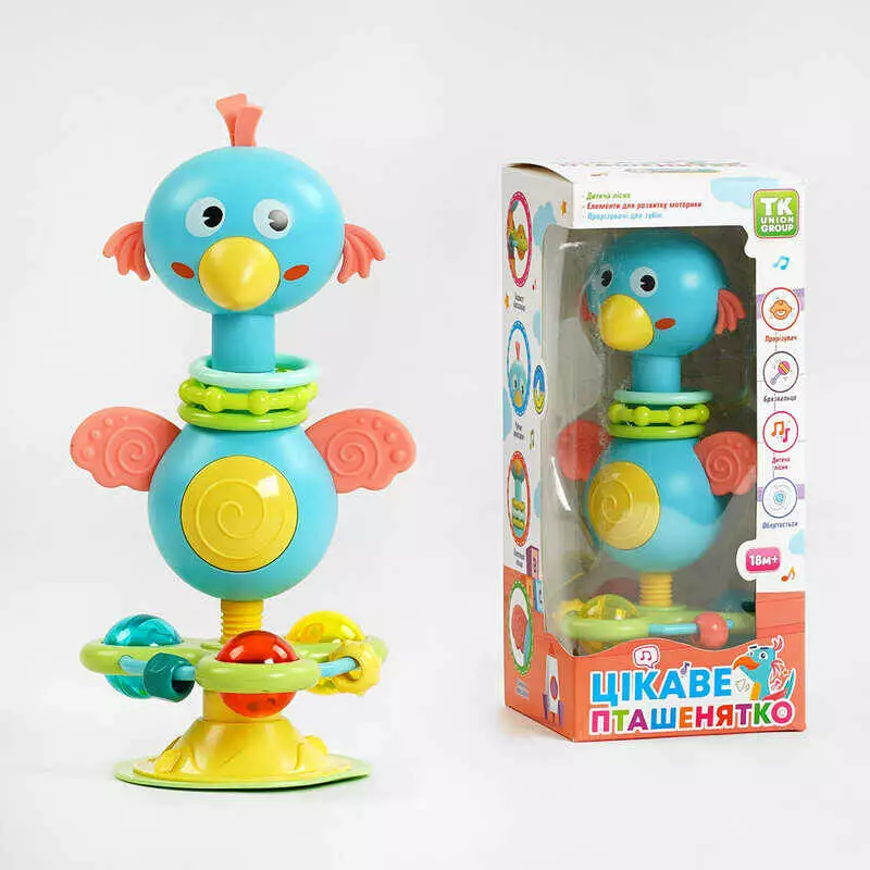 Брязкальце "Цікаве пташенятко" 45712 (60) "TK Group", ОЗВУЧУВАННЯ УКРАЇНСЬКОЮ МОВОЮ, пташка, присоска, прорізувач, мелодії та пісні, в коробці