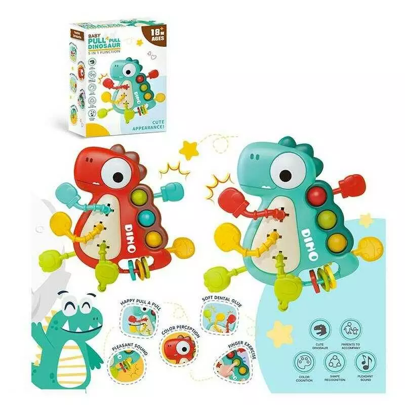 Брязкальце YD 750-14 (240/2) 2 кольори, “Динозавр”, поп-іт, гумові прорізувачі та елементи для перетягування, в коробці